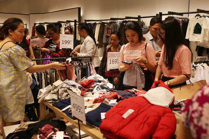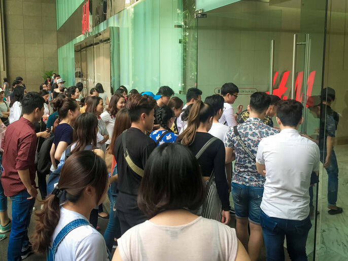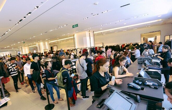 Cửa hàng H&M tại Vincom Center Đồng Khởi (quận 1) bán đồng giá 150.000 đồng một số sản phẩm nên thu hút rất nhiều bạn trẻ đến mua sắm.
