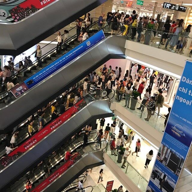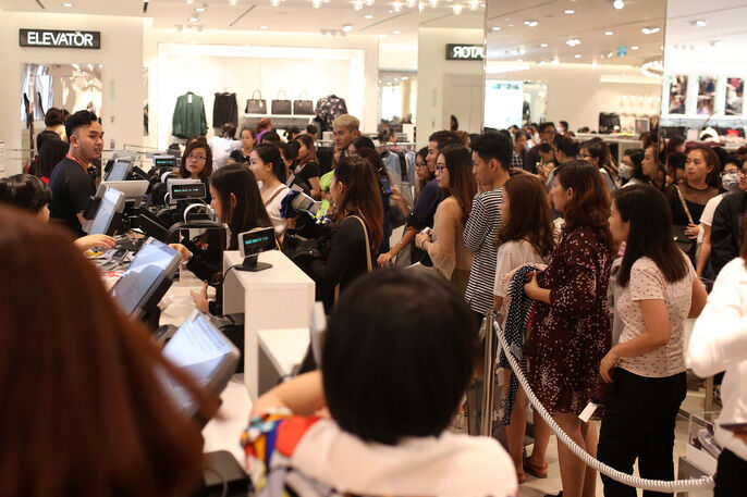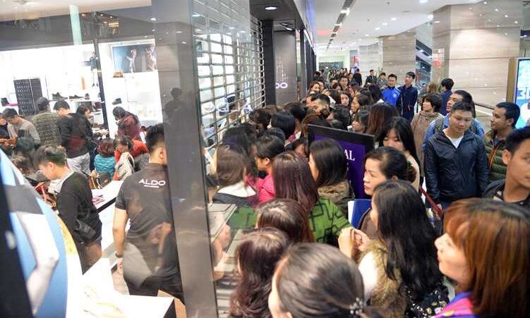 Đến cả các cửa hàng thương hiệu Aldo cũng đông kín người