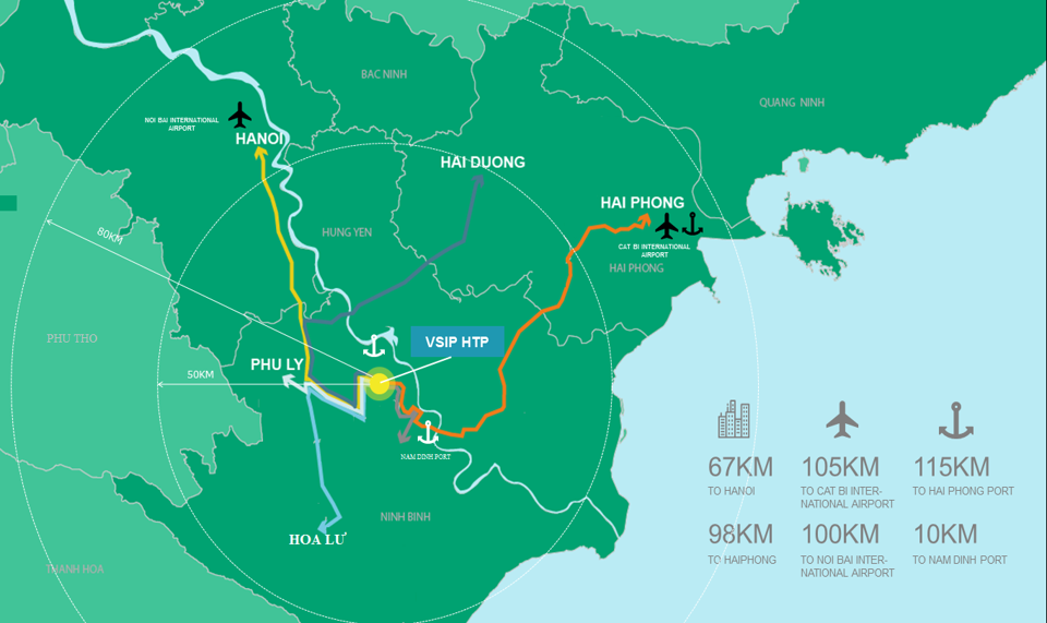 Vị trí của dự án trải rộng trên địa bàn các xã Trần Thương, Nhân Hà và Nam Lý, tạo thành một quỹ đất liền mạch, nằm ở điểm giao thoa của mạng lưới kết nối vùng trọng yếu. Từ đây, các trục giao thông huyết mạch như cao tốc Bắc - Nam, các tuyến liên tỉnh và hệ thống cảng sông, cảng biển của khu vực đều được tiếp cận trong thời gian ngắn, giúp việc vận chuyển nguyên vật liệu, sản phẩm công nghệ cao và di chuyển của đội ngũ chuyên gia trở nên thuận lợi hơn. Điều này tạo ra hành lang kết nối tự nhiên giữa Khu Công nghệ cao Ninh Bình và Hà Nội, Hải Phòng, những trung tâm kinh tế lớn của miền Bắc, đồng thời mở ra lợi thế cạnh tranh vượt trội trong việc thu hút các tập đoàn công nghệ đa quốc gia.
