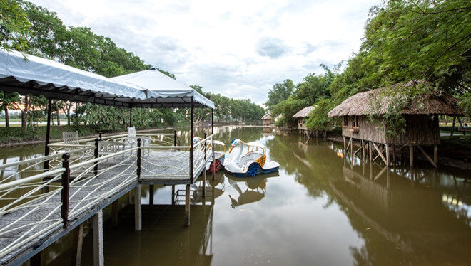 Với những căn phòng hướng sông thơ mộng, những ngôi nhà gỗ mái ngói đất nung, mở cửa ra là hàng tre xanh, hồ sen, ao cá, đặc biệt với những món ăn mang đậm bản sắc các vùng, miền…