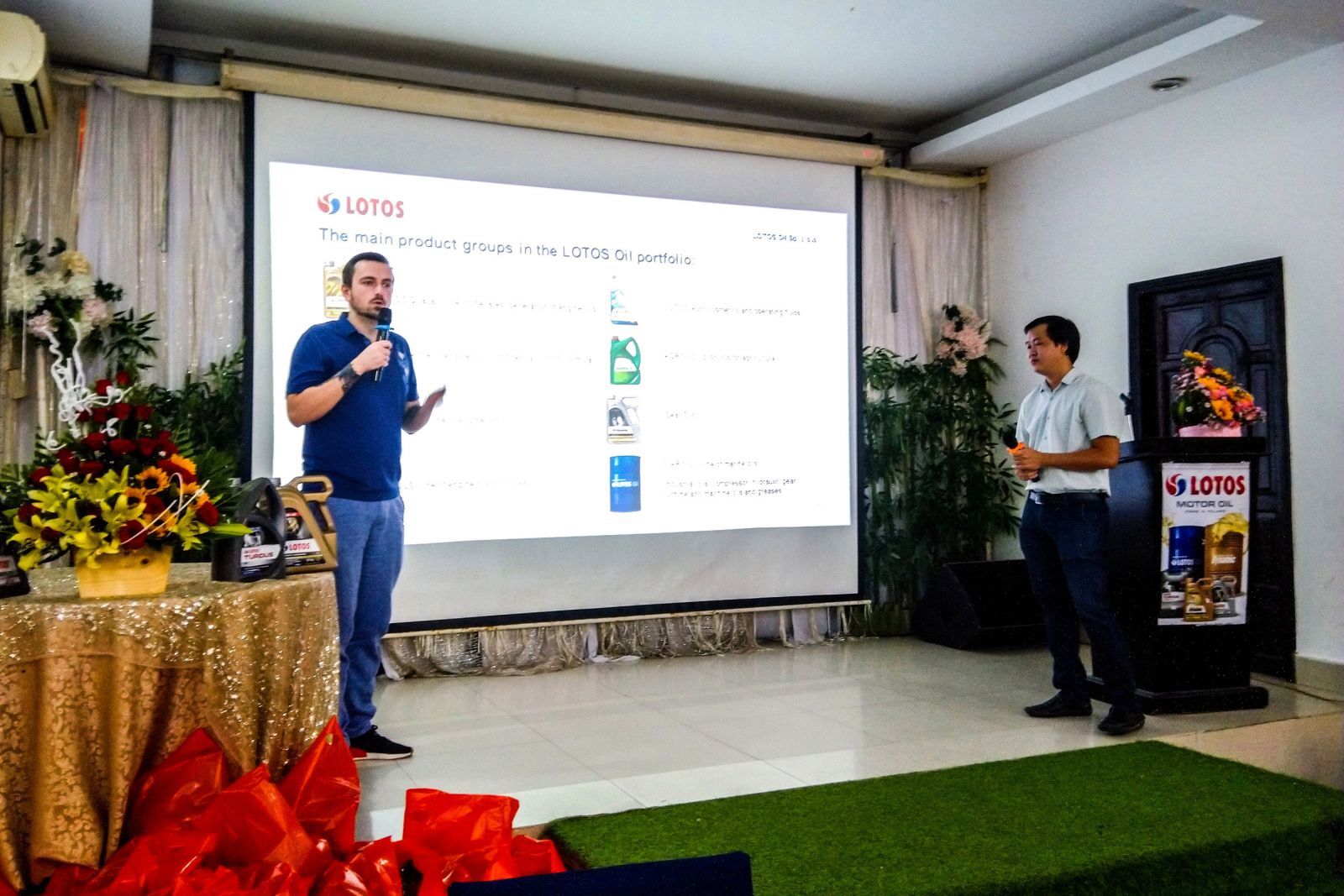 Tại hội nghị ông Maksim đã có phần thuyết trình giới thiệu về Tập đoàn Lotos các dòng sản phẩm của Lotos, nhà máy sản xuất, quy trình kiểm soát chất lượng tiêu chuẩn ISO 9001: 2008, AQAP 2110: 2009… các thị trường tiêu thụ sản phẩm, những nhà sản xuất xe hơi hàng đầu thế giới Ford, BMW, Porsche, Mack, Mercedes-Benz, Volvo, Volkswagen, KIA, Isuzu… khuyên dùng.
