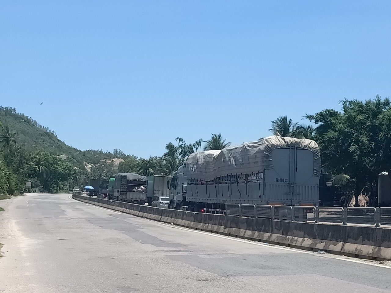 Qua địa phận huyện Kon Chro có rất nhiều xe chở cánh quạt điện gió nên cán bộ ở đây kiểm soát rất kỹ.