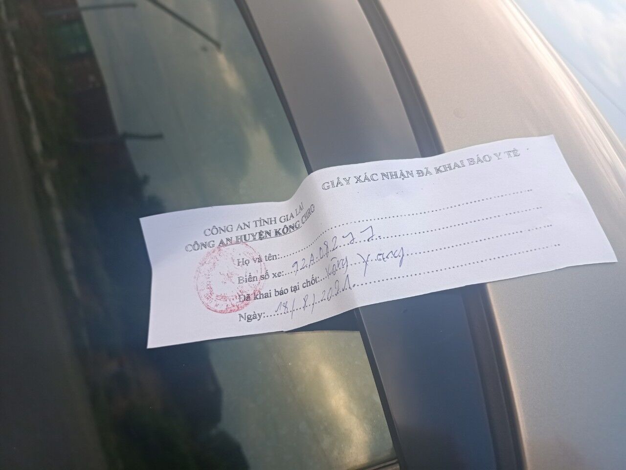 Hình ảnh niêm phong cửa xe. Đối với các trường hợp đi từ thiện chốt đầu tiên đến chốt cuối cùng của huyện không được xuống xe.