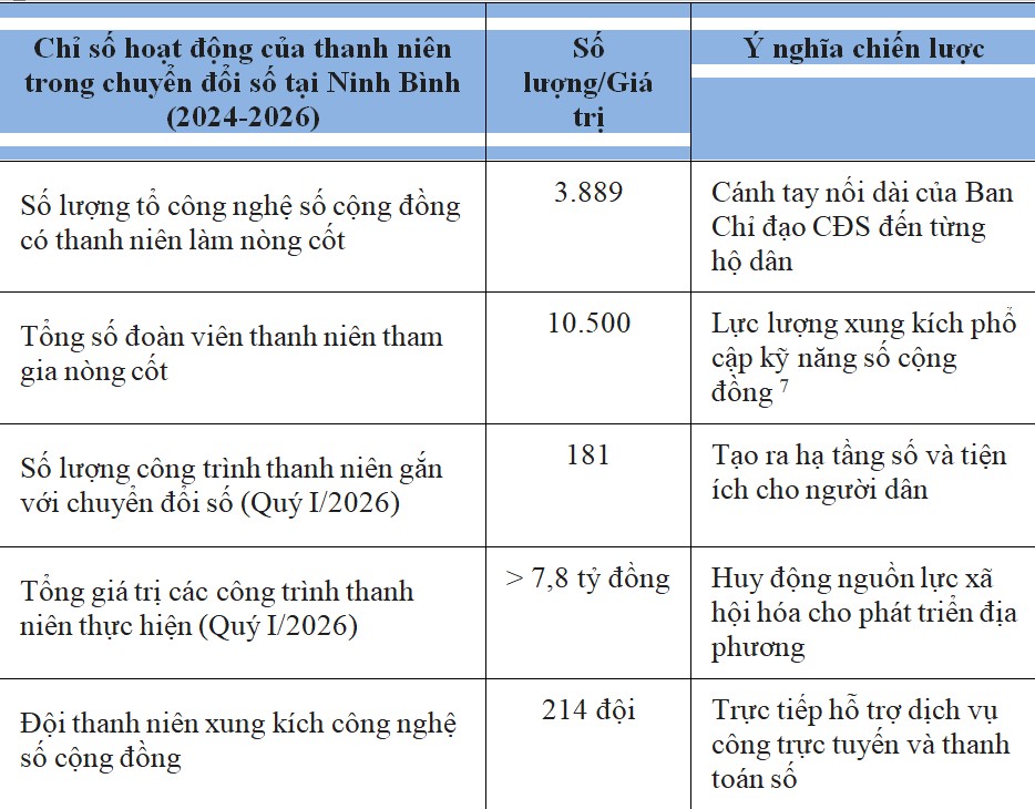 Bảng 1: Chỉ số hoạt động của thanh niên trong chuyển đổi số tại Ninh Bình (2024-2026)