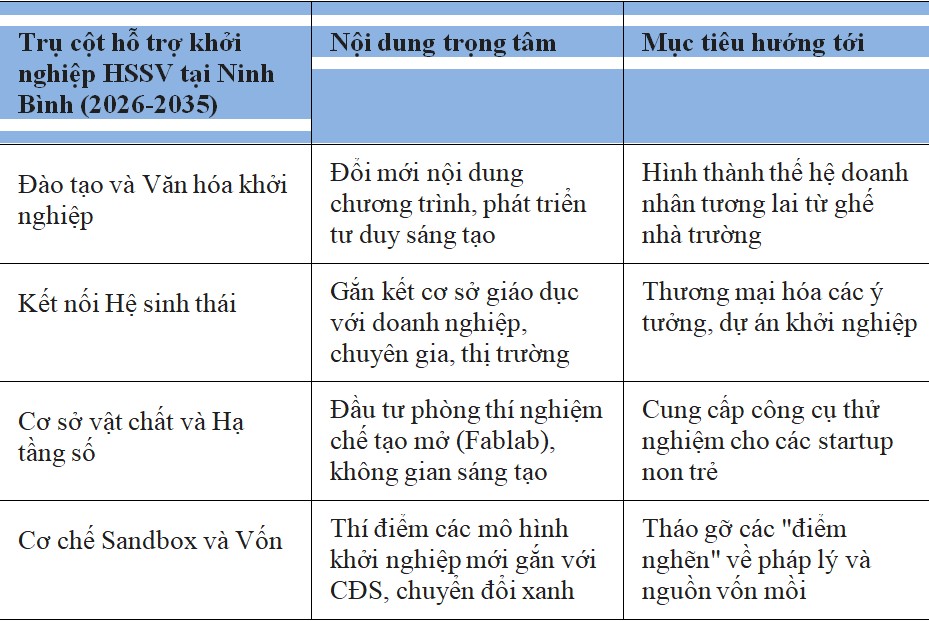 Bảng 3: Hoạt động hỗ trợ khởi nghiệp HSSV tại Ninh Bình (2026-2035)