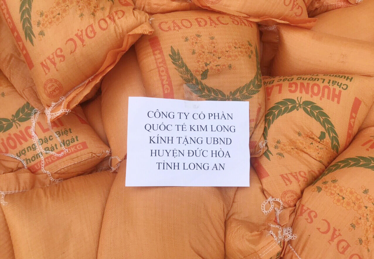 Tiếp nối những hoạt động thiện nguyện từ khi đại dịch Covid-19 xuất hiện ở Việt Nam, ngày 26/8, Công ty CP Quốc tế Kim Long đã trao tặng Huyện Đức Hoà, tỉnh Long An 30 tấn gạo trị giá khoảng 300 triệu đồng để hỗ trợ người dân và công nhân trên địa bàn trong giai đoạn phòng, chống dịch căng thẳng hiện nay.