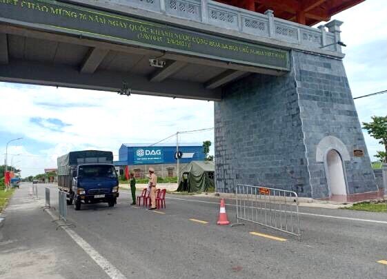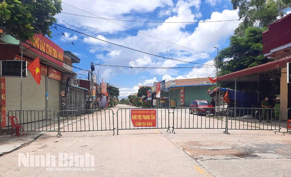 Chốt kiểm soát lưu thông tại các khu vực phong tỏa trên địa bàn huyện. Ảnh: Báo Ninh Bình