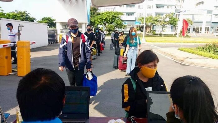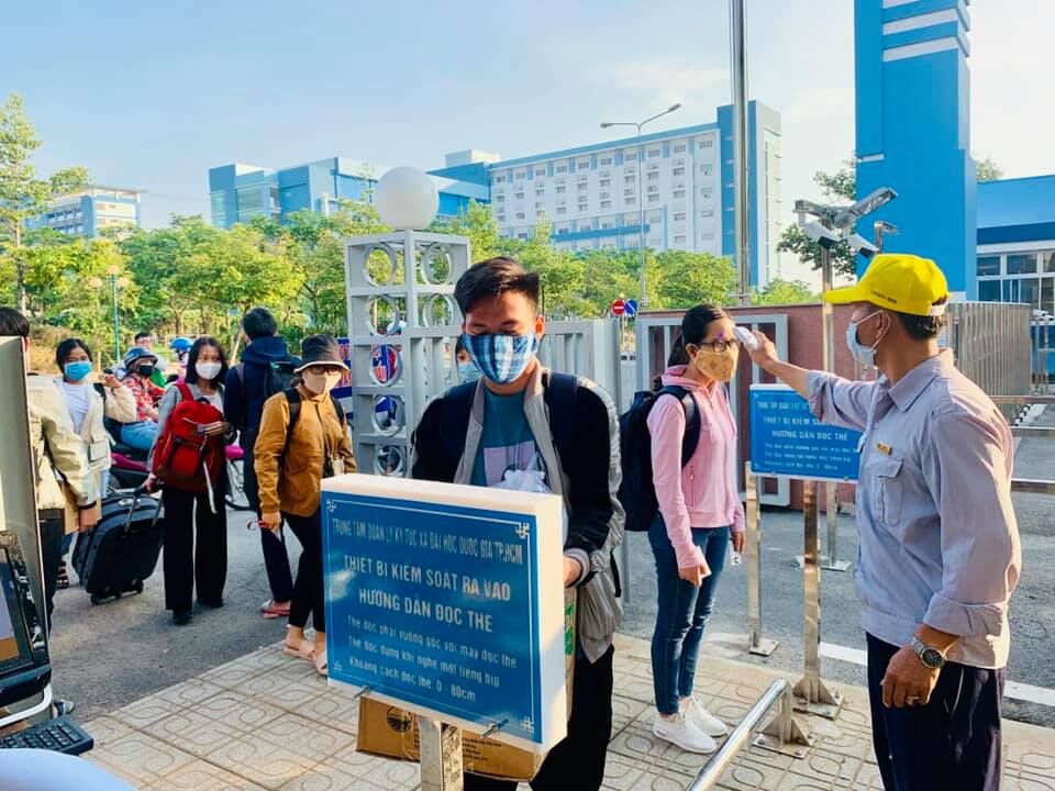 UBND TP.HCM chính thức không sử dụng ký túc xá ĐH Quốc gia TP.HCM làm khu cách ly tập trung. Khi tiếp nhận sinh viên trở lại ký túc xá, cán bộ nhân viên sẽ tiến hành kiểm tra thân nhiệt từng người, quẹt thẻ kiểm soát ra vào, ký cam kết, giao nhận đồ dùng theo quy định.