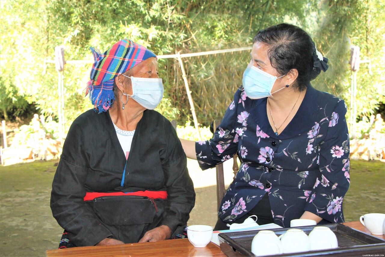 Đồng chí Giàng Páo Mỷ - Ủy viên Trung ương Đảng, Bí thư Tỉnh ủy, Chủ tịch HĐND tỉnh thăm gia đình bà Vàng Thị Máy tại bản Thèn Pả, xã Tả Lèng.