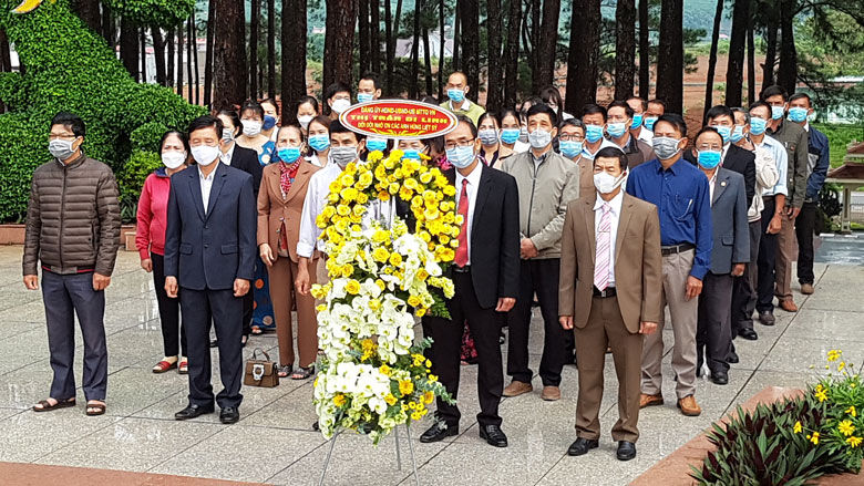 Tại lễ viếng, các đại biểu thị trấn Di Linh đã đặt vòng hoa tưởng niệm và thắp hương lên các phần mộ của các anh hùng liệt sĩ.
