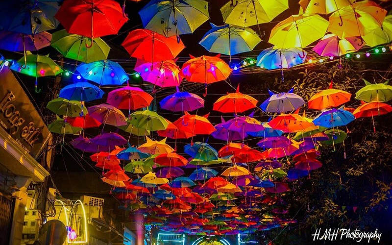 Ghé qua làng lụa Vạn Phúc (Hà Đông), du khách không thể nào bỏ qua địa điểm checkin có một không hai giữa lòng thủ đô. Đó chính là con đường ô đa sắc màu rực rỡ. Chắc chắn du khách sẽ bị mê hoặc bởi vẻ đẹp lạ mắt của hàng nghìn chiếc ô che phủ phía trên con đường.