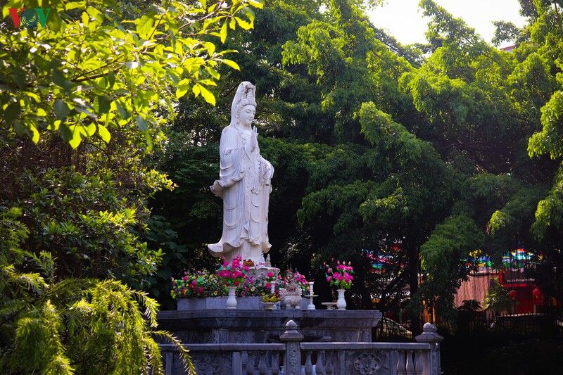 Bức tượng Phật Bà Quan Âm trên đài sen. (Ảnh: Internet)