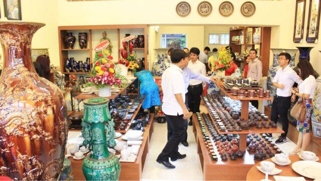 Gian trưng bày các sản phẩm gốm Bát Tràng thu hút du khách.