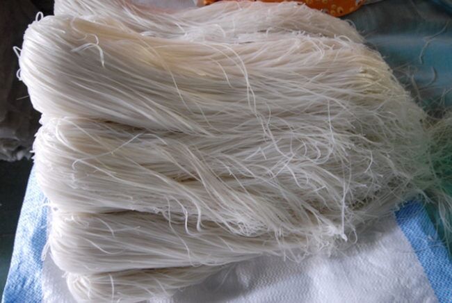Khâu tráng bánh cũng có quy cách riêng, sao cho bánh chỉ dày khoảng 1mm. Bánh sau khi phơi khô se được cắt thành từng bản dài khoảng 60cm, sau đó đưa vào máy cắt bánh thành sợi vào đóng gói.