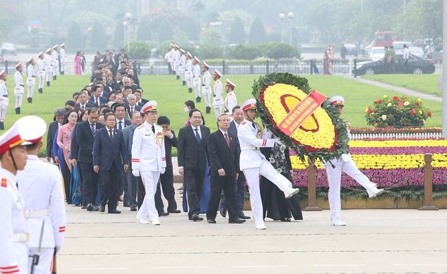 Các đồng chí lãnh đạo Đảng, Nhà nước, MTTQ Việt Nam đặt vòng hoa và vào lăng viếng Chủ tịch Hồ Chí Minh