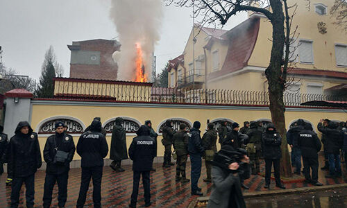 Pháo sáng và lựu đạn khói được ném thẳng vào Đại sứ quán Nga tại Kiev đêm 25/11