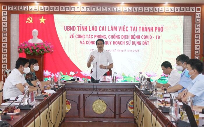 Tại buổi làm việc, đồng chí Đỗ Trường Sơn - Bí thư Thành uỷ Lào Cai đưa ra những đề xuất, kiến nghị với tỉnh về việc cho phép thành phố có thẩm quyền tạm dừng một số hoạt động có nguy cơ lây nhiễm cao; xây dựng Labo xét nghiệm SARS-CoV-2 tại Bệnh viện Đa khoa thành phố để thành phố chủ động công tác phòng chống dịch; khi bệnh nhân nghi nhiễm, nhiễm Covid-19 với số lượng lớn, cho phép thành phố chuyển Phòng khám Đa khoa khu vực Pom Hán thành điểm cách ly, điều trị tập trung; xem xét điều chuyển trung tâm y tế thành phố và trạm y tế xã, phường về UBND thành phố quản lý; đưa nhóm giáo viên, nhân viên trường mầm non tư thục vào đối tượng được hưởng hỗ trợ ngừng việc; ngân sách dự phòng của địa phương để phòng, chống dịch đã hết, số tiền hơn 13,6 tỷ đồng tổng hợp nhu cầu của các đơn vị phục vụ công tác phòng, chống dịch chưa có nên khó khăn trong việc triển khai nhiệm vụ vì vậy đồng chí Bí thư Thành uỷ Lào Cai đề nghị tỉnh bổ sung kinh phí cho thành phố để thực hiện các công tác phòng, chống dịch bệnh.