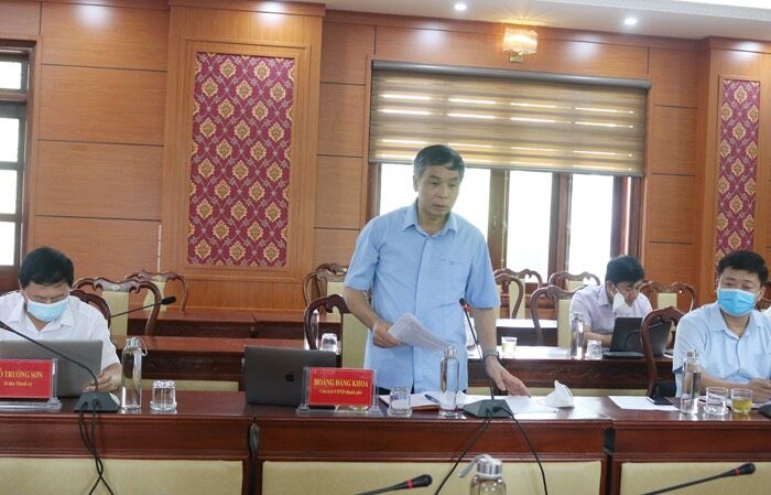 Chủ tịch UBND thành phố Lào Cai báo cáo công tác phòng, chống dịch bệnh Covid-19 tại buổi làm việc.