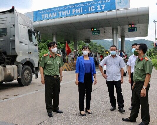 Đồng chí Giàng Thị Dung - Phó Chủ tịch UBND tỉnh cùng Đoàn công tác kiểm tra công tác phòng, chống dịch tại nút giao IC16, huyện Văn Bàn.