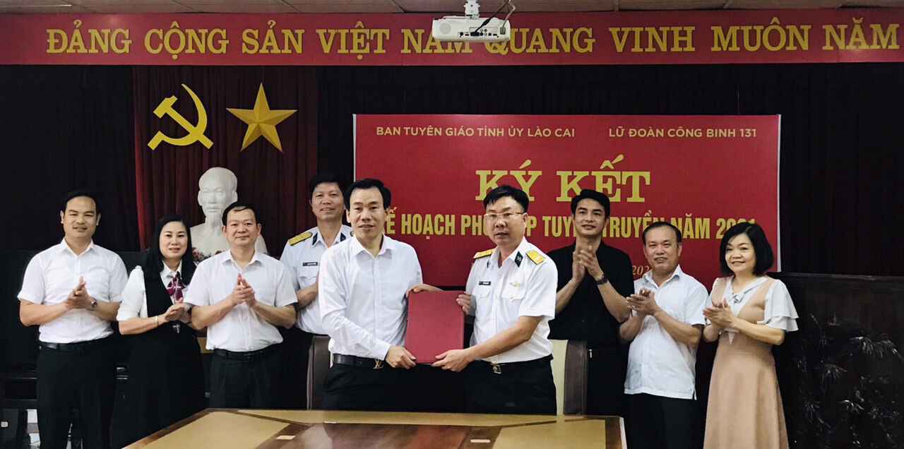 Thực hiện Nghị quyết số 36-NQ/TW, Hội nghị Trung ương 8 về “Chiến lược phát triển bền vững kinh tế biển Việt Nam đến năm 2030, tầm nhìn đến năm 2045”, Ban Tuyên giáo Tỉnh ủy Lào Cai đã tổ chức lễ ký kết kế hoạch phối hợp tuyên truyền về biển, đảo năm 2021 với Lữ đoàn Công binh 131 thuộc Quân chủng Hải quân.