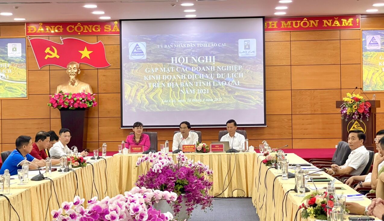 Sáng ngày 16/4/2021, UBND tỉnh Lào Cai tổ chức Hội nghị gặp mặt doanh nghiệp kinh doanh dịch vụ du lịch trên địa bàn tỉnh nhằm nhằm tháo gỡ những khó khăn của ngành trước ảnh hưởng của dịch Covid-19 và triển khai kế hoạch kích cầu du lịch" Hương sắc Lào Cai".