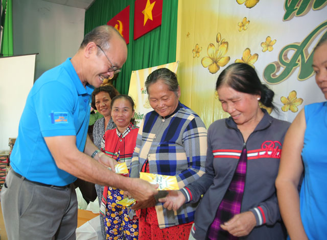 Ông Trần Minh Triết – Phó TGĐ Nhà máy bia Heineken Việt Nam phát quà cho các hộ gia dình có hoàn cảnh khó khăn.