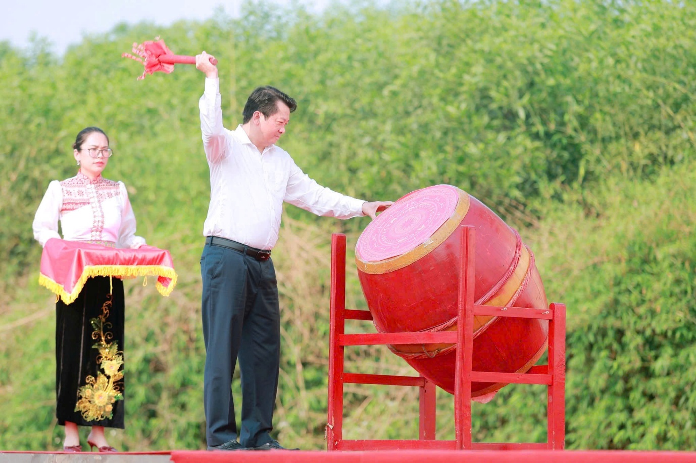 Ông Chu Anh Tuấn - Bí thư phường Thái Hòa đánh trống khai Lễ