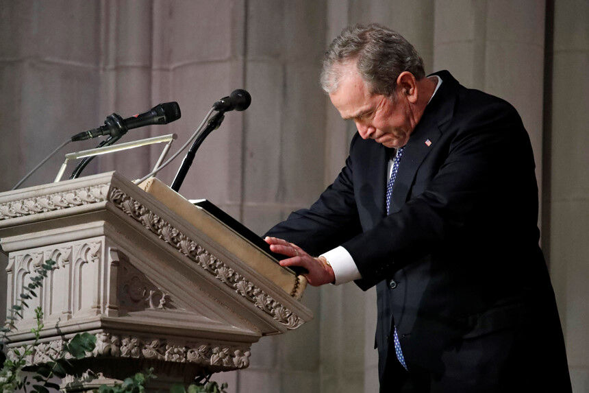 George W. Bush không thể kìm nén được sự xúc động khi kết thúc bài phát biểu. Với đôi mắt ngấn lệ và giọng nói nghẹn ngào: “Qua những giọt nước mắt, chúng ta biết rằng mình được ban phước lành khi được biết đến ông và yêu mến ông. Một người cao quý, một người cha tuyệt vời”.