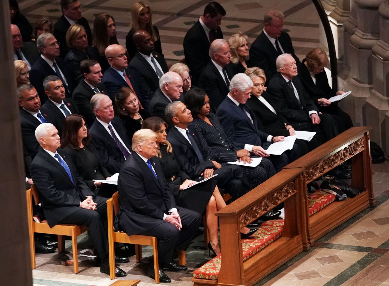 Tại tang lễ, Tổng thống Mỹ Donald Trump, phu nhân Melania cùng vợ chồng các cựu tổng thống Jimmy Carter, Barack Obama và Bill Clinton ngồi ở hàng ghế đầu. Lễ tang còn có sự tham dự của các quan khách nước ngoài như Thái tử Charles của Anh, Thủ tướng Đức Angela Merkel, Vua Abdullah II và Hoàng hậu Rania của Jordan, cựu tổng thống Ba Lan Lech Walesa và cựu thủ tướng Canada Brian Mulroney.