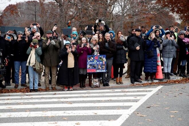 Người dân đứng dọc ở đại lộ Pennsylvania khi đoàn xe chở linh cữu ông Bush đi từ tòa nhà quốc hội đến nhà thờ.