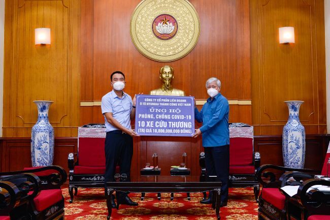 Hôm nay (08/09), Liên doanh Ô tô Hyundai Thành Công Việt Nam (HTV) chính thức trao tặng 10 chiếc xe Hyundai Solati cứu thương tới Mặt trận Tổ quốc Việt Nam nhằm tăng cường nguồn vật lực phòng chống đại dịch Covid-19 cho các bệnh viện tuyến đầu chống dịch trên toàn quốc.