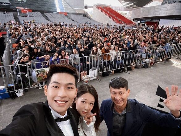 Nguyễn Phan Linh Đan (giữa) cùng với đạo diễn Nguyễn Phan Quang Bình (phải) và diễn viên Quốc Anh tại Liên hoan phim quốc tế Busan 2019.