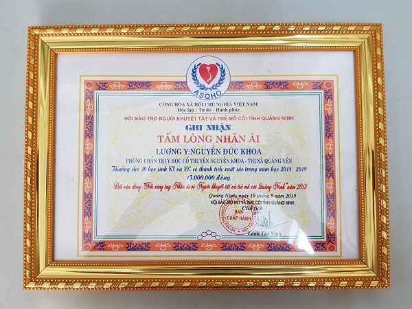 Hay hoạt động thiện nguyện trao tặng 30 xuất quà cho các cháu học sinh học giỏi là trẻ khuyến tật và trẻ mồ côi tại tỉnh Quảng Ninh cũng là bằng chứng thiết thực thể hiện sự tâm đức của lương y Nguyễn Đức Khoa.