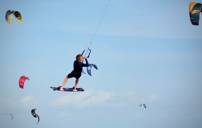 Anh Kermo Vitira, một vận động viên đến từ Estonia dành cả tháng trời lướt ván diều ở biển Ninh Hải. Đây là lần thứ 7, anh Kermo Vitira đến Ninh Thuận thỏa đam mê lướt trên từng ngọn sóng và vút bay lên không trung với chiếc ván và những cánh diều.