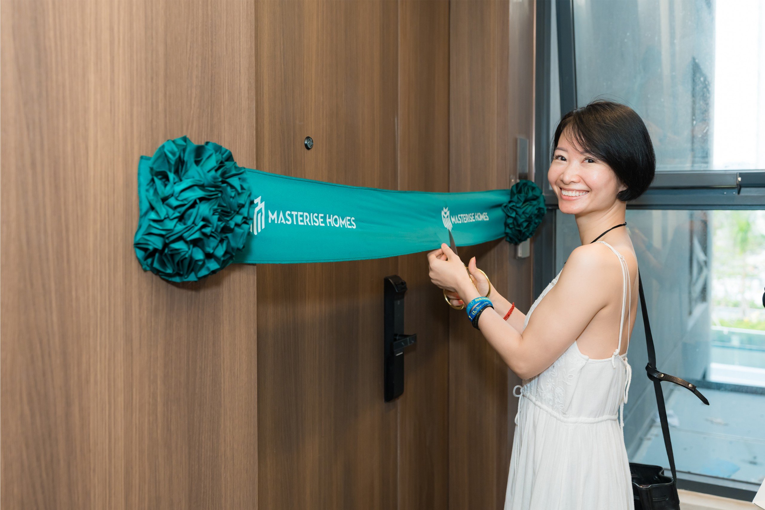 Đại diện Masterise Homes chào đón các dư dân và tặng quà ý nghĩa theo đúng phong cách xanh “leafscape” độc đáo của dự án