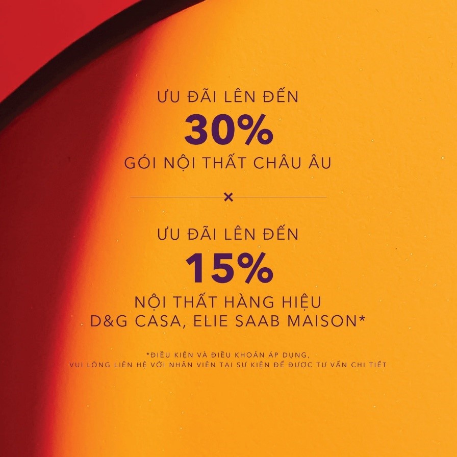 Tận dụng lợi thế từ các đối tác quốc tế như MODALE – Nhà phân phối nội thất hàng hiệu độc quyền tại Việt Nam và ELLE Decoration Vietnam – đơn vị truyền thông hàng đầu về kiến trúc và nội thất, Masterise Homes mang tới một không gian Triển lãm Nội thất - Nghệ thuật đẳng cấp, cùng với chuỗi hoạt động và trải nghiệm độc đáo: triển lãm nội thất Hàng hiệu Dolce & Gabbana Casa (D&G Casa), ELIE SAAB Maison kết hợp nghệ thuật thị giác ấn tượng; chuỗi workshop và talkshow được dẫn dắt bởi các chuyên gia đến từ châu Âu. Đặc biệt, tất cả khách tham quan đều có cơ hội mua nội thất châu Âu ưu đãi lên đến 30%.