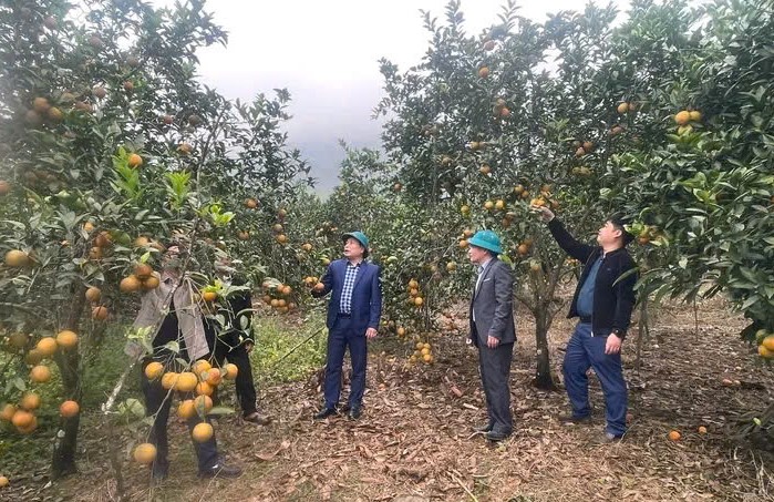 Lãnh đạo xã Xuân Hòa thăm hộ dân trồng cam trên địa bàn