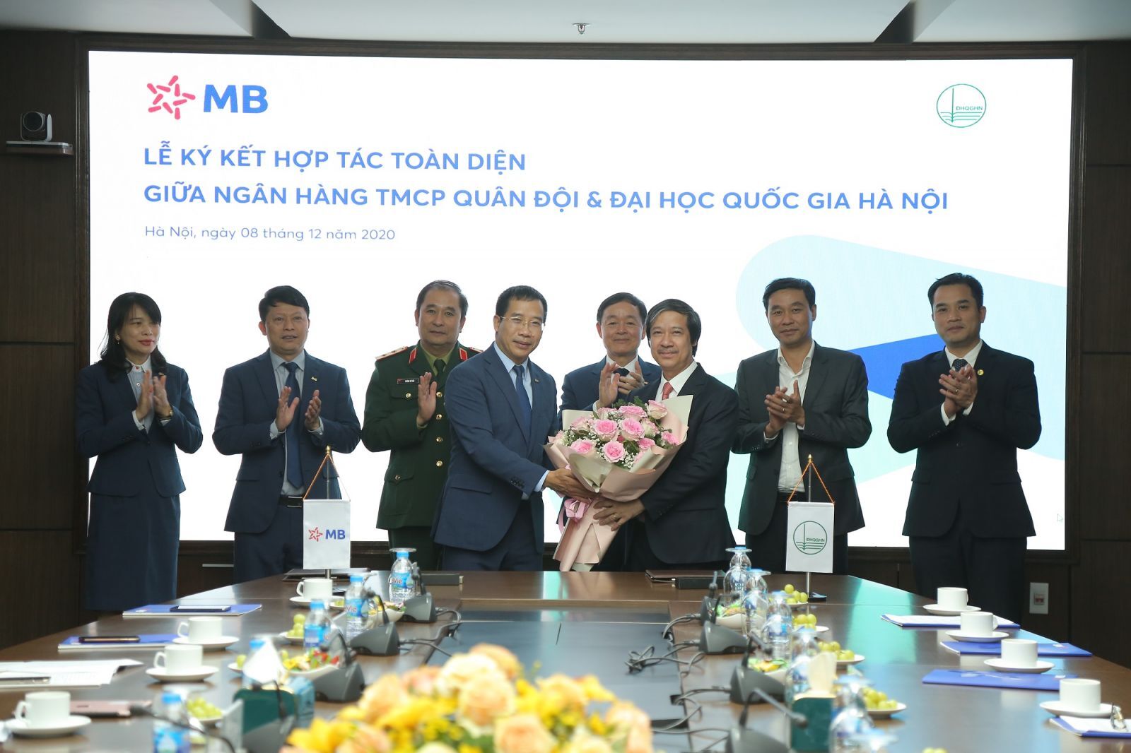 Ngày 08/12/2020 vừa qua, sự kiện ký kết Thỏa thuận hợp tác toàn diện giữa Ngân hàng Quân đội (MB) và Đại học Quốc gia Hà Nội (VNU) đã diễn ra tại trụ sở chính của MB tại Hà Nội. Lễ ký kết đánh dấu sự hợp tác trên nhiều mặt giữa hai bên, trong đó nổi bật là chiến lược xây dựng sản phẩm riêng biệt, ưu đãi của MB dành cho Đại học Quốc gia Hà Nội.