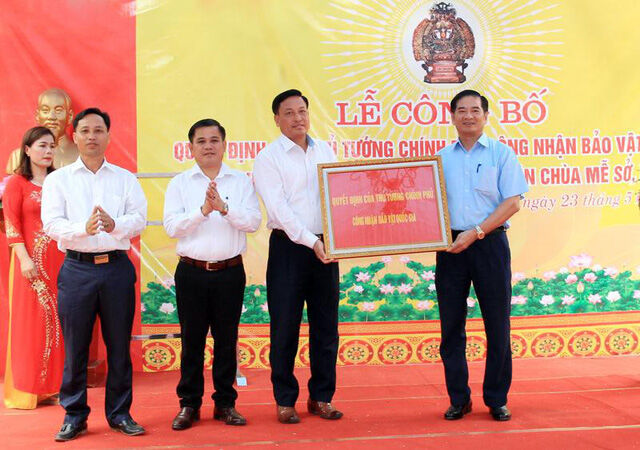 Phó Chủ tịch Thường trực UBND tỉnh Đặng Ngọc Quỳnh trao Quyết định của Thủ tướng Chính phủ công nhận Tượng Phật Quan Âm Thiên Thủ Thiên Nhãn chùa Mễ Sở là bảo vật quốc gia