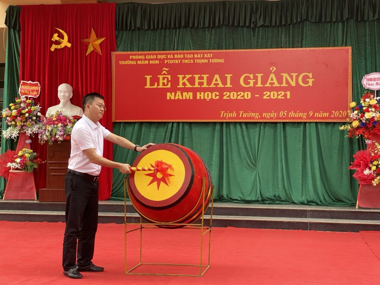 Đồng chí Nguyễn Quang Bình - Phó Bí thư, Chủ tịch huyện Bát Xát đánh trống khai giảng năm học mới
