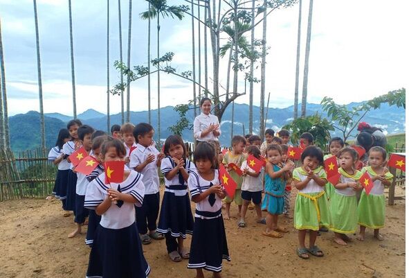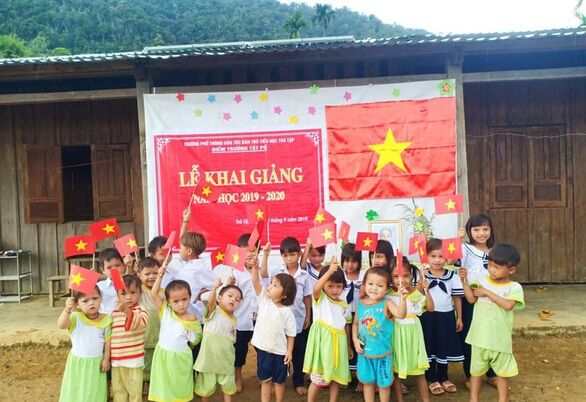 VNHN - Lễ khai giảng tại điểm trường Tăk Pổ (Trường Phổ thông Dân tộc bán trú tiểu học Trà Tập, xã Trà Tập, huyện Nam Trà My, tỉnh Quảng Nam) với 34 khuôn mặt ngây thơ, háo hức, tay cầm cờ đỏ sao vàng, theo cô giáo chạy trên ngọn đồi đẹp như trong tranh.