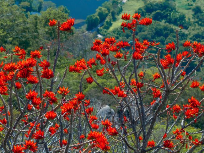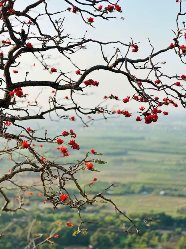 Những ngày này, trên các hội nhóm du lịch và nhiếp ảnh, những bức hình về hoa vông nem đỏ rực, mọc cheo leo trên vách núi Bà Đen (Tây Ninh) đang trở thành tâm điểm. Hoa vông nem mang một vẻ đẹp hoang dại, tự do, khiến bất cứ ai đi cáp treo lên đỉnh núi cũng phải trầm trồ.