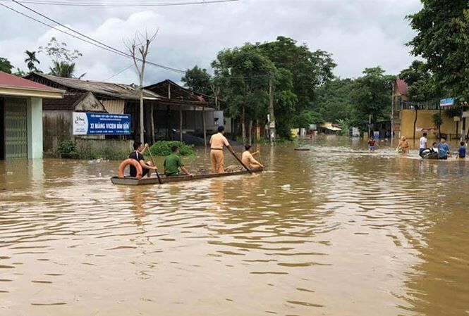 Công an cứu trợ ở thị trấn Cành Nàng, huyện Bá Thước, tỉnh Thanh Hóa.