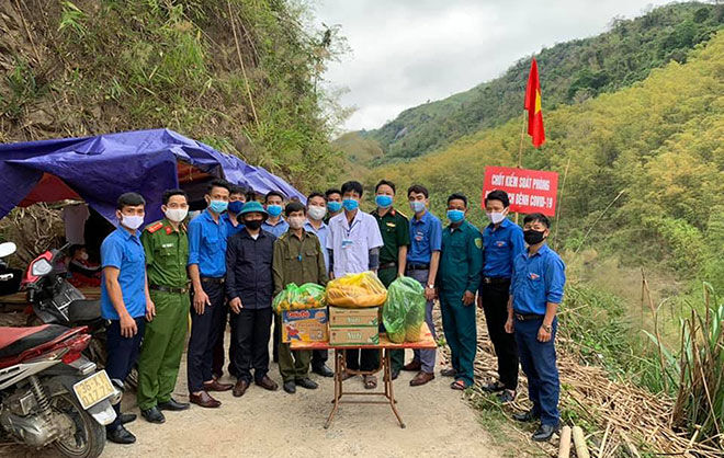 Người dân địa phương mang lương thực, thực phẩm tặng tổ công tác liên ngành kiểm tra, kiểm soát phòng chống dịch COVID-19 của xã Mường Lý, huyện Mường Lát.