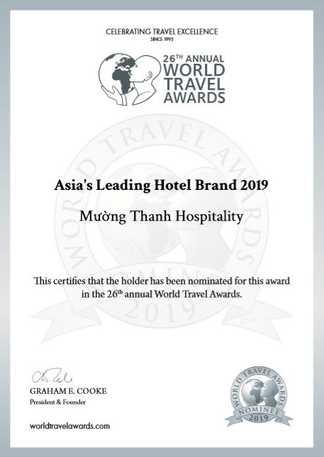 Theo thông tin từ Tổ chức Giải thưởng Du lịch Thế giới (World Travel Awards – WTA), hệ thống khách sạn thuộc tập đoàn Mường Thanh tiếp tục là thương hiệu Việt duy nhất lọt vào danh sách đề cử giải thưởng WTA – “Thương hiệu khách sạn hàng đầu châu Á năm 2019.” Giải thưởng “Thương hiệu khách sạn hàng đầu châu Á 2019” là một trong những hạng mục quan trọng của giải thưởng danh giá World Travel Awards mùa thứ 26.