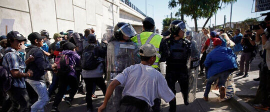 Trước đó cùng ngày, theo các nhân chứng cho biết, cảnh sát Tijuana đã giải tán các cuộc biểu tình thường nhật, gây ra cảnh tượng hỗn loạn khi những người biểu tình bỏ chạy theo nhiều hướng. Một số người biểu tình cho biết họ có ý định vượt biên vào Mỹ.