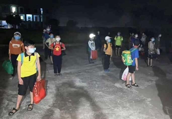 Các em học sinh học cùng lớp với bệnh nhân N.X.Đ được tập trung đưa đi cách ly đêm 10/5