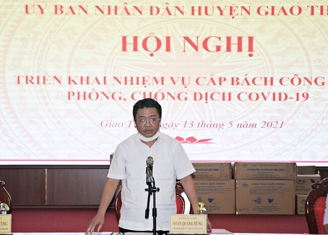 Chiều 13-5, trên địa bàn huyện Giao Thủy đã ghi nhận ca nghi nhiễm SARS-CoV-2 đầu tiên. Trước diễn biến phức tạp của dịch bệnh, đồng chí chủ tịch UBND huyện đã yêu cầu triển khai ngay các biện pháp cấp bách phòng, chống dịch Covid-19.