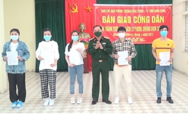 Ngày 3/4, tại Trung tâm Quản lý công dân cách ly tỉnh Nam Định, Bộ CHQS tỉnh phối hợp với Trung tâm Kiểm soát bệnh tật tỉnh Nam Định tổ chức trao Giấy chứng nhận hoàn thành thời gian cách ly y tế tập trung và bàn giao 144 công dân trở về địa phương.