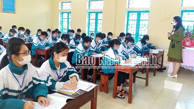 Cô và trò Trường THPT Lê Quý Đôn (Trực Ninh) trong một giờ học môn Lịch sử. (Ảnh: Báo Nam Định)